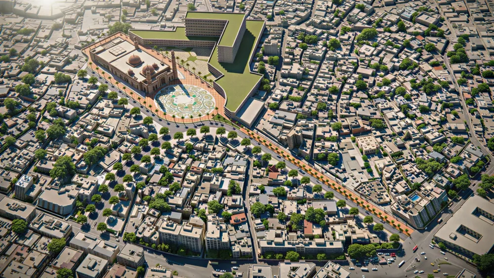 - Establishment of a processional pedestrian boulevard leading toward the mosque