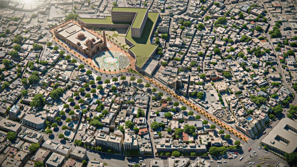 - Establishment of a processional pedestrian boulevard leading toward the mosque