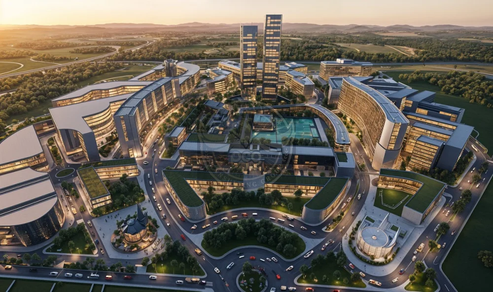 - Central Landmark Axis: A grand boulevard leading to twin towers and a central business hub, establishing a strong urban identity.
